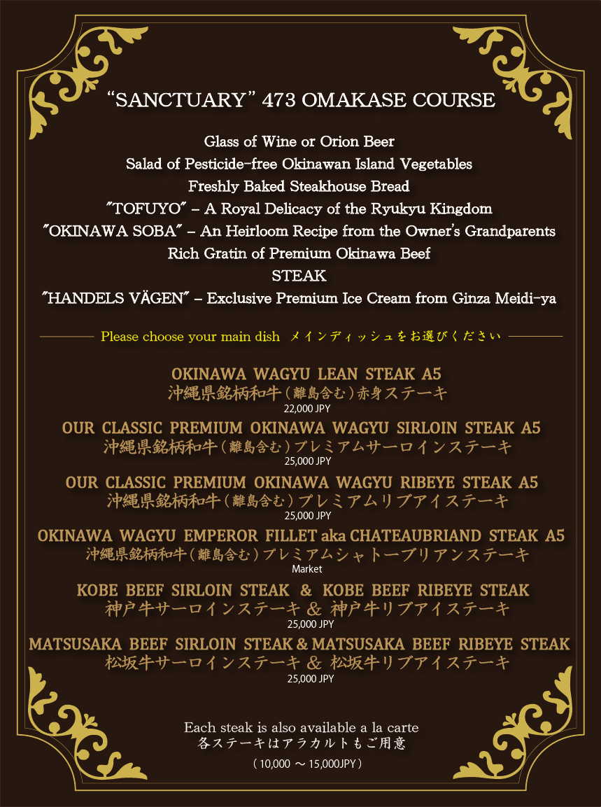Okinawa has a deep history where authentic steak culture took root under U.S. administration. We are the legitimate successors of that tradition. We are also distinctly different from the U.S.-based luxury steakhouses found in Tokyo. While they are foreign-owned chains serving mainly “US Beef,” 473 serves Japan’s treasures: “Okinawa Wagyu, Kobe Beef, and Matsusaka Beef,” and we are proud to be a locally owned family business. We grill the world’s finest “Wagyu” using the American “Thick Cut” technique. This fusion of “American Culture” and “Japanese Ingredients” is the final evolution of steak. The substantial texture of a thick cut (which Teppanyaki lacks) combined with the rich umami of Wagyu (which US beef lacks). We promise you the “No.1 Steak Experience in Japan” that possesses the best of both worlds.