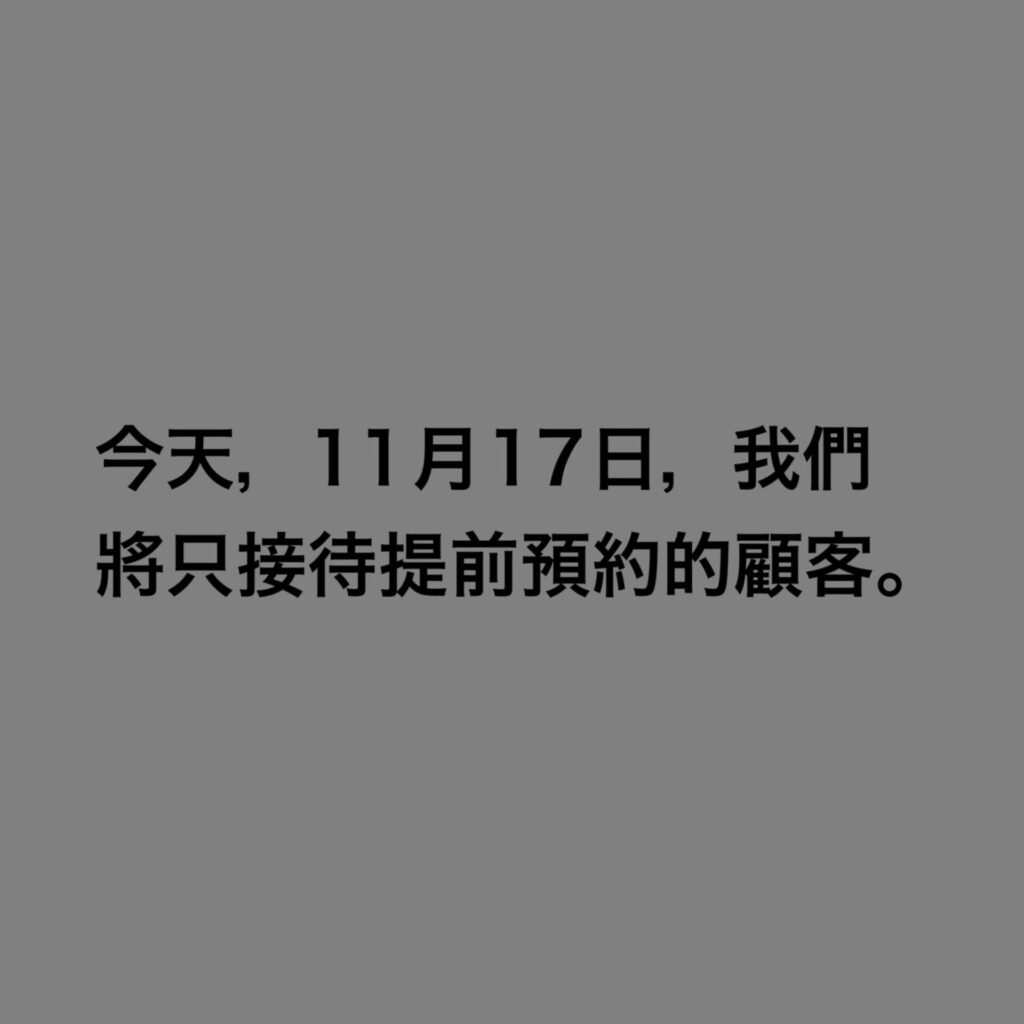 請注意,今天只接待已預訂的顧客。